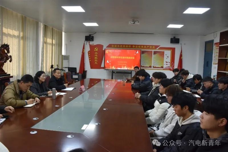 为深入贯彻立德树人根本任务,进一步强化学生思想引领,精准回应学生发展诉求,倾听学生成长心声,着力提升教育教学及后勤保障服务品质,12 月 23 日下午,大发体育平台于 3002 会议室隆重召开校领导与学生面对面座谈会。本次座谈会邀请学校党委委员、副校长周有国参加,汽电学院党总支书记朱燕鸣主持会议,学院辅导员、专任教师以及学生代表共同参与。