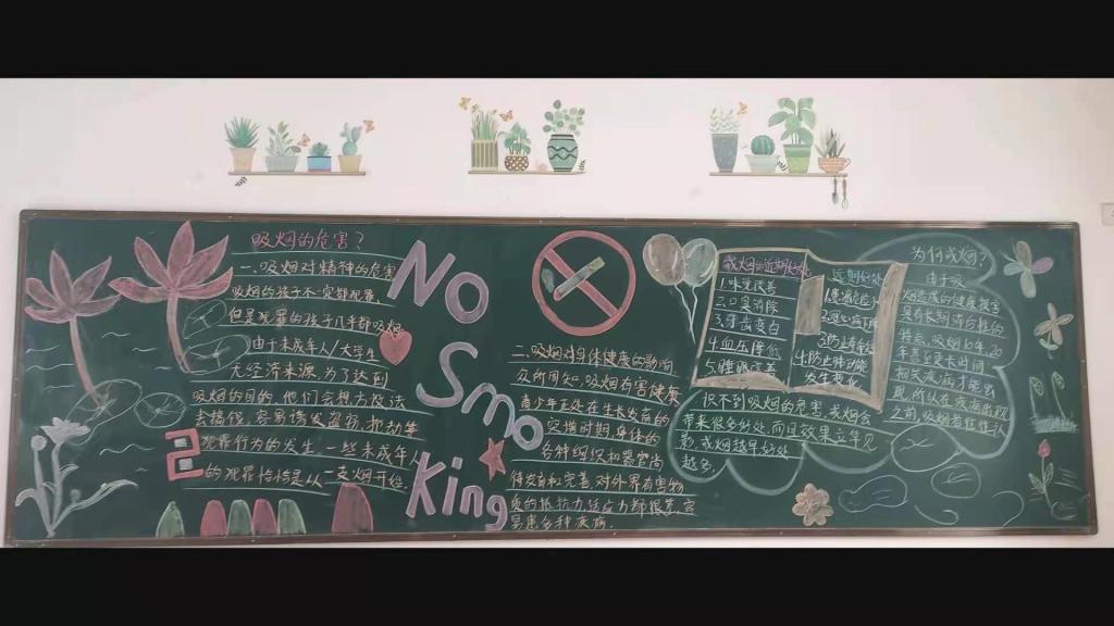 会前,各班级出了一期以“禁烟”为主题的板报进行宣传教育,营造浓厚的“禁烟”氛围。