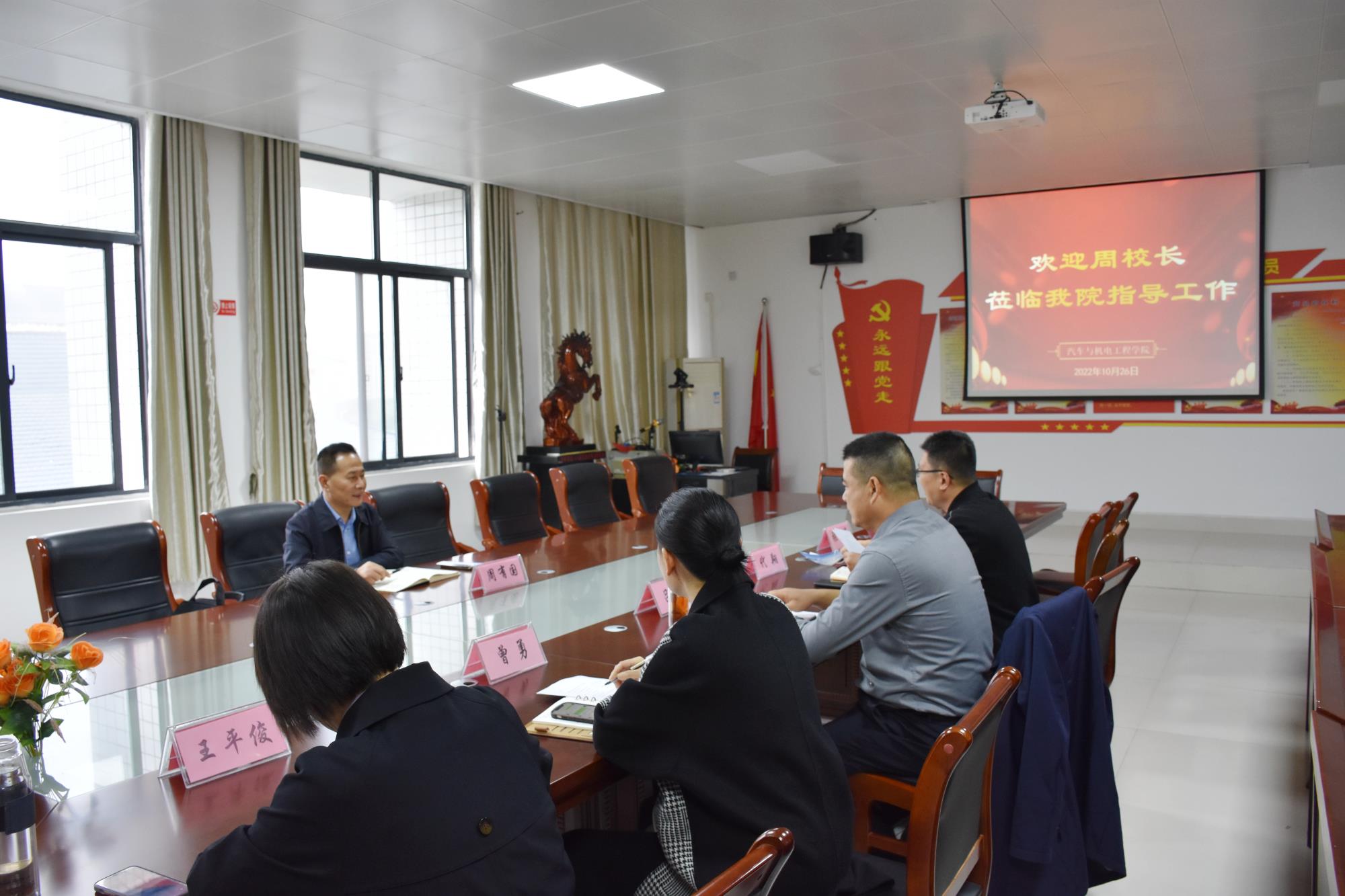 大发体育平台党总支书记代翔汇报了学院基本情况、党建和学生工作,院长吕争汇报了学院专业建设、实训室建设、校企合作等发展中面临的问题及下一步工作思路、建议。