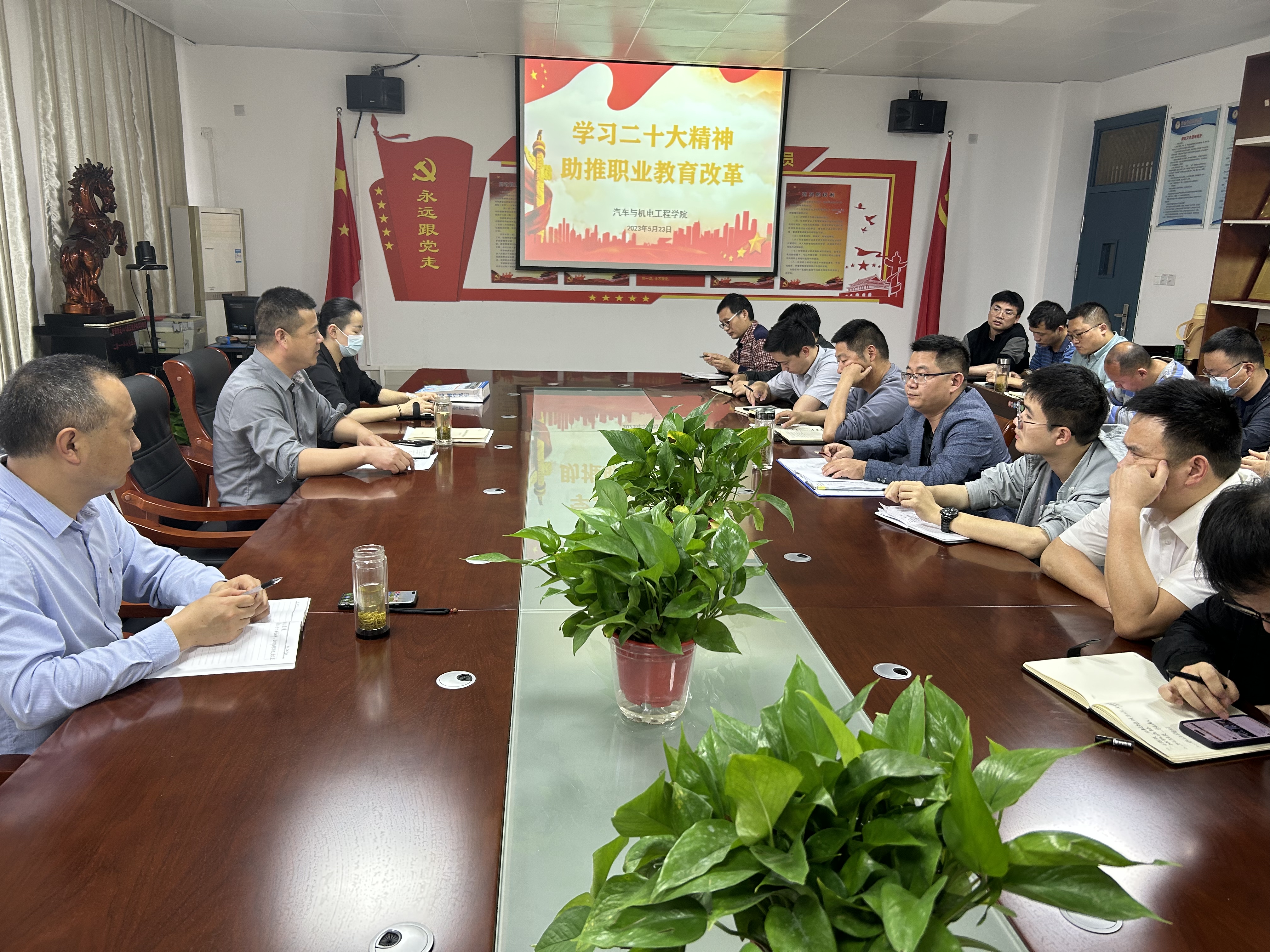 为深入学习贯彻党的二十大精神,发挥党建示范引领作用,5月23日下午,大发体育平台院长吕争以“学习二十大精神 助推职业教育改革”为题在3002党员之家讲授党课。学院全体党员教职工参加了此次党课。
